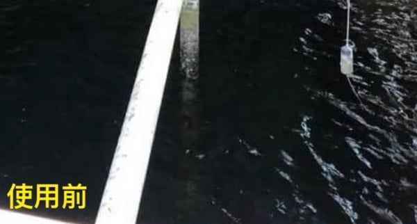 普通の水がナノビートウォーターと共鳴し、安定した低水分子に変化することで菌数は減少し、水分子が小さくなったことで砂や汚れを水分子が保持できなくなり、水の透明感が増すなどの水質が大幅に改善されました。